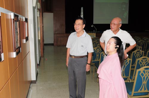 楊恩典小姐向本社林主席永昆、葉總經理傳福介紹其義賣畫作