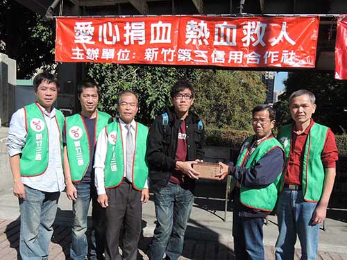 本社營業部黃錦發經理致贈捐血民眾紀念品 |