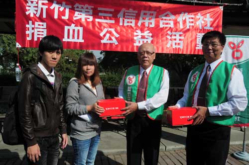 ◎本社於99年11月27日在東門圓環發起捐血活動,同仁們率先挽袖捐血,民眾紛紛響應,感謝大家熱情參與,新竹三信將會持續發起公益活動,以回饋社會。 |