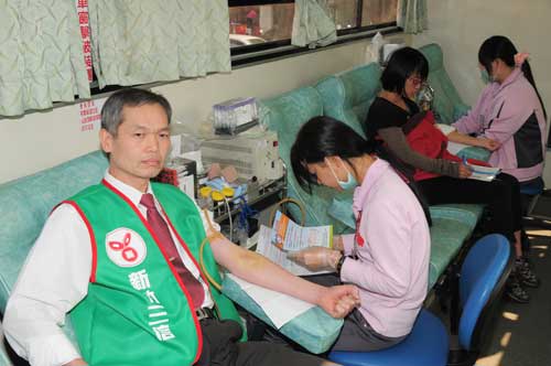 本社葉總經理率領同仁號招民眾捐血助人 |